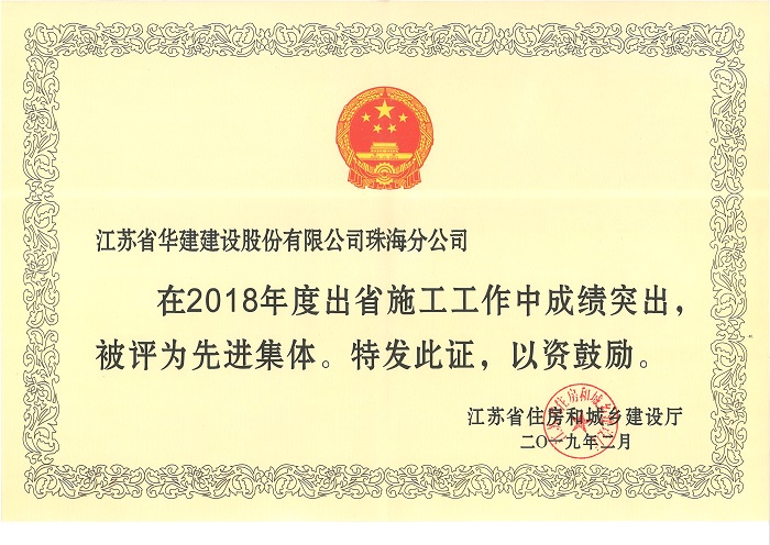 公司獲評2018年度珠海市建筑業(yè)優(yōu)秀企業(yè)