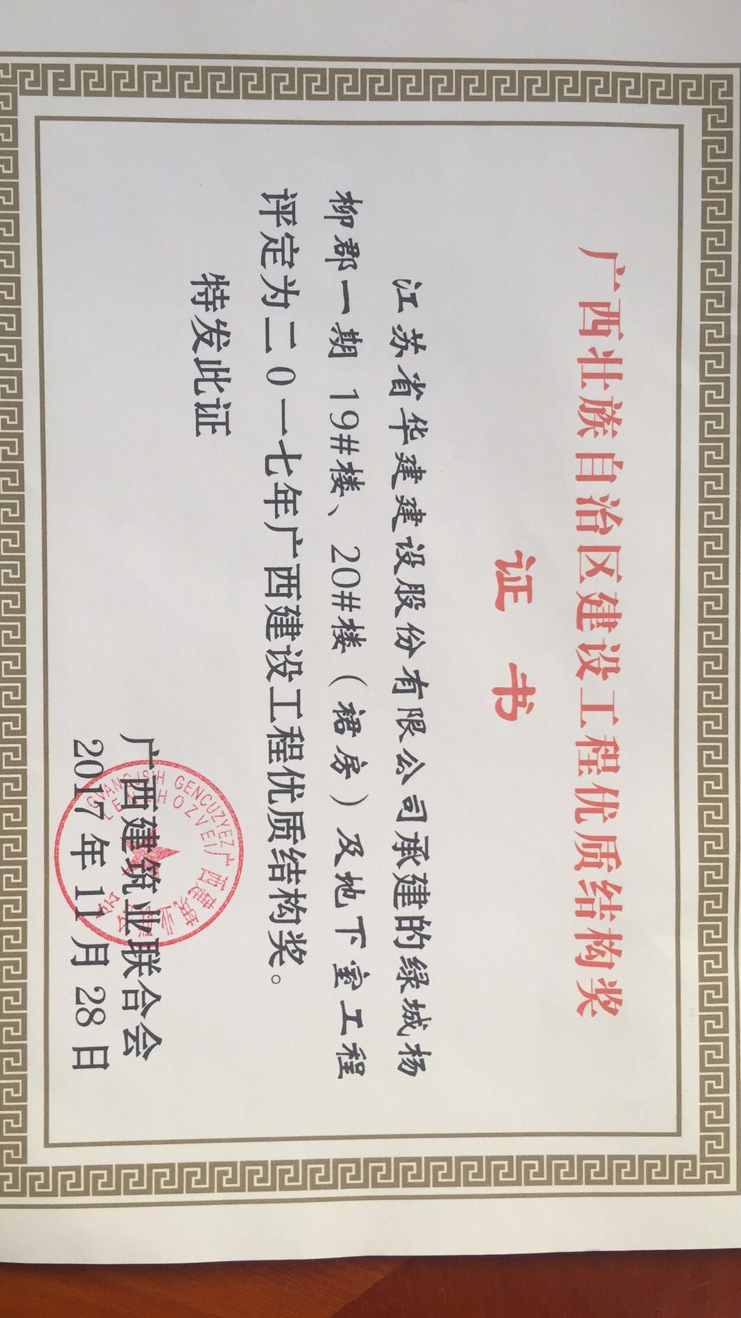 北京公司2項工程獲廣西區優質結構工程獎 時間:2017-12-26 3287 近期從廣西建筑業聯合會獲悉,我公司總承包施工的廣西自治區柳州市“綠城楊柳郡一期19#、20#樓(裙房)及地下室工程”和“綠城楊柳郡一期15#樓及地下室工程”兩項工程被評定為二0一七年廣西建設工程優質結構獎,這也是北京區域公司在廣西自治區獲獎的第一個項目。 該項目開工之初就明確了爭創廣西自治區優質工程的目標,在施工中,項目部注重實體結構質量,勇于技術創新,在北京區域公司內率先使用鋁模板施工工藝,在建設單位組織的第三方多次檢測也均取得了較好的成績。