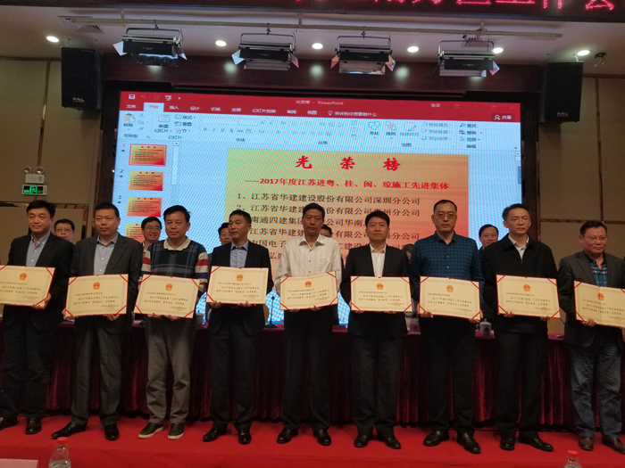 3月24日,2018年度江蘇建筑業(yè)南方區(qū)工作會(huì)議在深圳召開(kāi),會(huì)議表彰了一批江蘇出省施工先進(jìn)集體及先進(jìn)個(gè)人。惠州公司被江蘇省住房和城鄉(xiāng)建設(shè)廳評(píng)為“2017年度江蘇出省施工先進(jìn)集體”,總經(jīng)理周群利、技術(shù)處主任陳申高被江蘇省住房和城鄉(xiāng)建設(shè)廳評(píng)為“2017年度江蘇出省施工先進(jìn)個(gè)人”;史泰龍、孔祥明、王興東分別被江蘇省人民政府駐深圳(廣州)辦事處表彰為2017年度江蘇進(jìn)粵、桂、閩、瓊施工質(zhì)量安全、經(jīng)營(yíng)財(cái)務(wù)和新聞報(bào)道先進(jìn)個(gè)人。