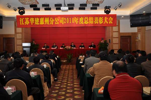大會由惠州公司副總經理嚴龍山同志主持,惠州公司總經理華恒榮同志在會上作了題為《保穩定促規范,強化管理謀發展;勇開拓重創新,奮勇進取譜新篇》的工作報告。報告對惠州公司2010年各項工作和成果進行了客觀、全面、深刻的總結與回顧。報告認為,去年以來,面對深刻變化的國際國內環境,競爭激烈的建筑市場,在公司總部的堅強領導下,惠州公司堅持“保穩定、防風險、創品牌、促發展”的工作方針,全體員工團結一心,克難求進,順利完成了總部年初下達的任務指標,精神文明建設再結碩果;工程創優技術進步取得新突破;各工程處(項目部)呈現頗多亮點。盤點2010年,是濃墨重彩的一年,更是惠州公司發展史上不平凡的一年,全年著力于“穩”,彰顯出“新”,構建 成“和”,在經營開拓、質量安全、風險管控、內部管理等各個方面都取得了實實在在的工作業績。報告還對工作中存在的問題和困難逐一梳理,并按照江蘇華建董事會五屆一次、二次會議精神,結合惠州實際,對2011年度工作提出了工作意見,要求惠州公司上下繼續發揚“敢拼、敢干、敢冒”的創業精神,努力光大經營特色,繼往開來,不斷進取,圍繞“平穩、規范、創新、拓展”的工作方針開展工作:繼續加強經營開拓力度,提高經營實效,確保規模增長;繼續加強現場施工管理,提升管理水平,推動創新創優;繼續加強風險監管控制,細化財務工作,保持平穩發展;繼續加強內部管理規范,探尋共同價值,打造和諧企業。
