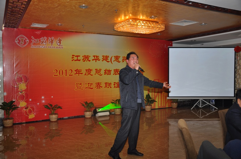 在隨后的迎春聯(lián)誼會(huì)上,一臺由惠州公司上下精心準(zhǔn)備、齊力打造、自編自演的精彩演出,表達(dá)出了廣大員工對2012年取得業(yè)績的自豪與喜悅,以及對公司美好未來的憧憬與向往。在演出中,由機(jī)具處員工莊曙演繹的男聲獨(dú)唱,以高亮的美聲唱法,讓在座嘉賓擊掌叫好;四位機(jī)關(guān)員工表演的三句半《華建style》,詼諧幽默談發(fā)展,回顧展望頌華建,讓在場觀眾掌聲不斷;蔡總和華總兩位領(lǐng)導(dǎo)帶頭獻(xiàn)歌,唱出了華建人對事業(yè)的激情與豪邁,對未來的堅(jiān)定與信仰。最后,由宗總、林總兩位總部領(lǐng)導(dǎo)和惠州公司12名男女員工組成的合唱團(tuán)獻(xiàn)上的一曲《華建之歌》更是將整個(gè)活動(dòng)推向了高潮,臺上的小合唱變成了在場華建人的大合唱,掌聲歡呼聲此起彼伏,年會(huì)在歡歌笑語中圓滿結(jié)束。新年思變,實(shí)干興業(yè),華建人立足惠州,一路高歌,奮勇前行。