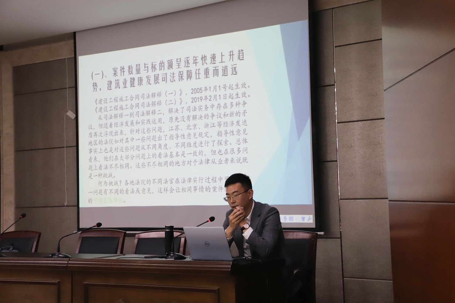 兩位律師結合法律條文及自身工作經驗,分別從公司法務和專業律師的角度用大量案例就建設工程施工合同的締約、實施及糾紛處理、優先受償等內容從“事前防范、事中控制、事后補救”三個階段進行實操性講解,并針對實際工作中容易產生的合同管理、材料供應環節的漏洞進行分析和警示。他們的講座緊扣實務,讓參與者心生共鳴,收獲良多。