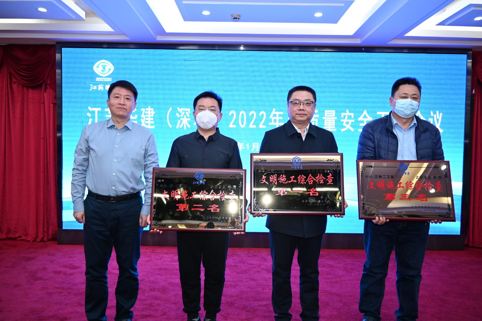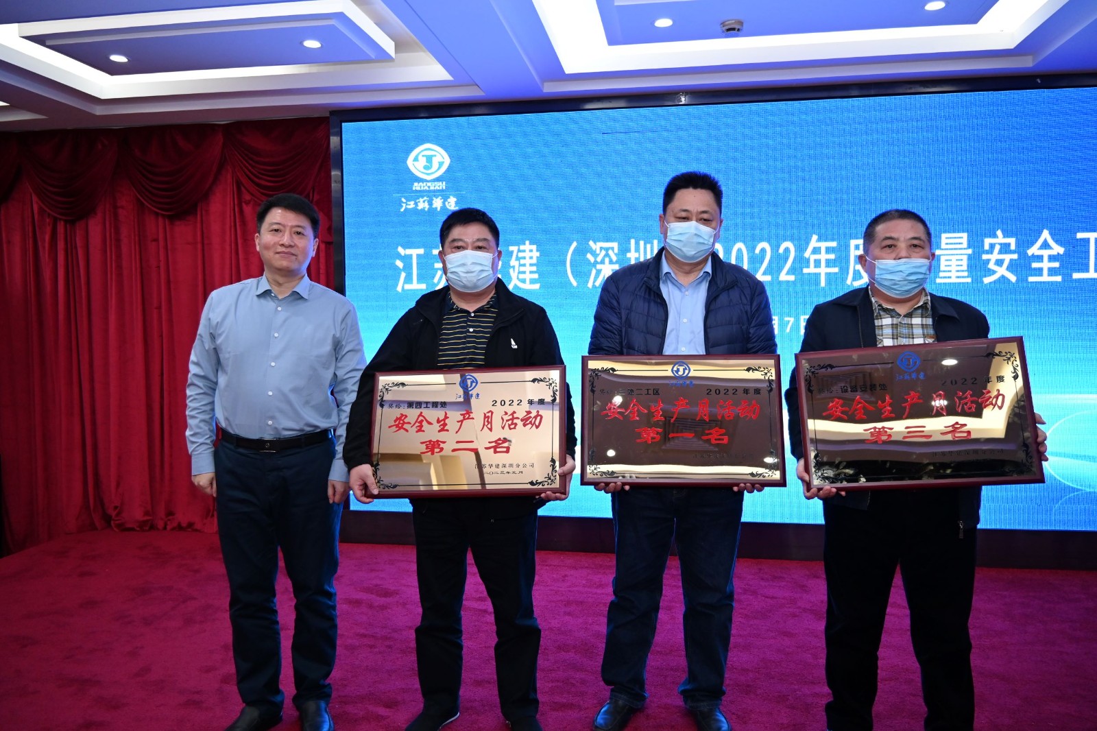 會議表彰了2022年下半年先進項目經(jīng)理部、安全生產(chǎn)、文明施工檢查綜合評分前三名和“安全生產(chǎn)月”活動前三名,公司總經(jīng)理吳碧橋為獲獎工程處頒發(fā)了榮譽獎牌。