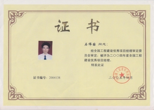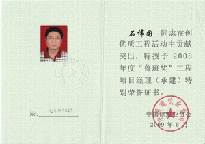 該同志先后擔(dān)任過多項(xiàng)工程的項(xiàng)目經(jīng)理,施工中所體現(xiàn)出的管理水平、協(xié)調(diào)能力、進(jìn)度控制贏得了主管部門和甲方的高度評價(jià)。尤其值得一提的是,石偉國擔(dān)任深圳市最大商住樓工程——深圳紅樹西岸(建筑面積35萬平方米)項(xiàng)目經(jīng)理期間,精心組織,精心施工,精心管理,創(chuàng)出優(yōu)良的工程質(zhì)量,工地成為業(yè)內(nèi)外進(jìn)行觀摩學(xué)習(xí)的重要基地,前來參觀者絡(luò)繹不絕,人數(shù)逾3000人次,都深深嘆服于有口皆碑的工程質(zhì)量。該工程在2004年度深圳市上半年度工程質(zhì)量、安全生產(chǎn)文明施工檢查中獲第一名,被評為廣東省、深圳市“雙優(yōu)”、深圳市金牛獎(jiǎng)、江蘇省“揚(yáng)子杯”、廣東省“金匠獎(jiǎng)”,2008年度問鼎全國建設(shè)工程最高質(zhì)量榮譽(yù)魯班獎(jiǎng)。