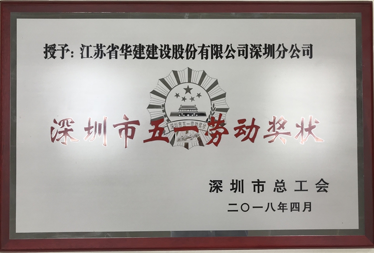 江蘇華建深圳分公司被授予深圳市五一勞動獎狀 時間:2018-04-27 3650 4月26日下午,在“五一”國際勞動節來臨之際,深圳市隆重召開慶祝“五一”國際勞動節大會,表彰一批在推動深圳經濟特區各項事業發展中作出重大貢獻的先進集體和先進個人,廣東省委常委、深圳市委書記王偉中、市人大常委會主任丘海、市政協主席戴北方出席大會并為獲獎者代表頒獎。會上,江蘇華建深圳分公司被授予2018年深圳市五一勞動獎狀(全市僅25家獲此殊榮),也是唯一一家建筑施工企業,這是對江蘇華建勞動創造輝煌的充分肯定,是對公司奮斗贏得榮光的高度褒獎。