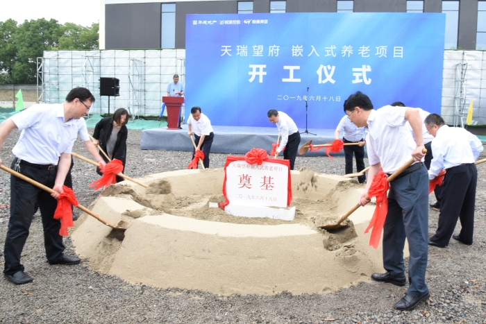6月18日上午,揚州首個主城區嵌入式養老試點項目“天瑞望府”舉行開工奠基儀式,建工控股、江蘇華建董事長王宏,城建控股總經理葉善祥,恒通建設董事長陳有川,市民政局副局長徐德林,建工控股副總經理、華建地產董事長程杰,城建控股副總經理方璇智,市民政局養老服務處處長潘勤,恒通建設總經理談德元等相關單位和部門領導及各施工單位負責人出席。儀式由項目公司揚州華鵬置業副總經理刁華根主持。