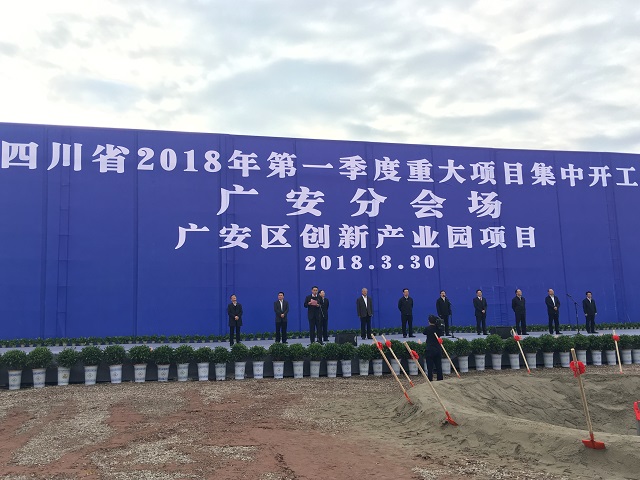 3月30日上午,四川省2018年第一季度重大項目集中開工儀式在我司臨港都市產業園基礎設施建設項目(標準廠房二期建設工程)現場舉行。四川省人大常委會副主任、廣安市委書記侯曉春率廣安市四套班子成員出席開工儀式,珠海區域公司總經理呂方達參加開工儀式并作為施工方代表發言。