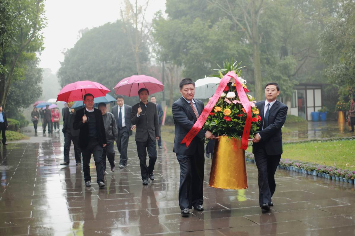 在廣安期間,陸董事長一行還瞻仰了鄧小平同志故居,并向小平同志銅像敬獻花籃。