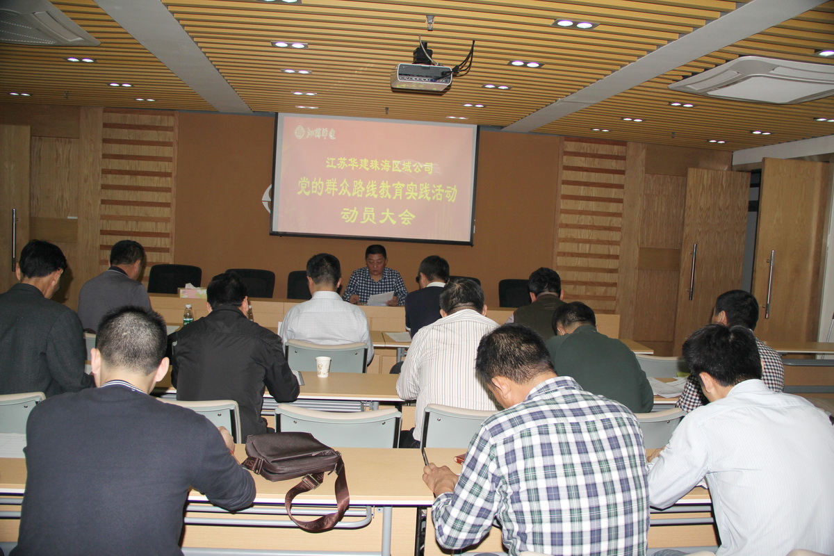 2014年3月25日下午,江蘇華建珠海區域公司黨委及機關支部召開黨的群眾路線教育實踐活動動員大會,在珠各工程處、直管項目部負責人和公司機關全體人員參加。珠海區域公司黨委書記、機關支部書記繆國樞主持會議并作了動員講話。會議傳達了《揚州建工控股公司黨委關于深入開展黨的群眾路線教育實踐活動的實施方案》。并結合“四風”建設征求意見情況要求全體黨員和公司機關員工進行整改,以切實改進工作作風,提升精神風貌。