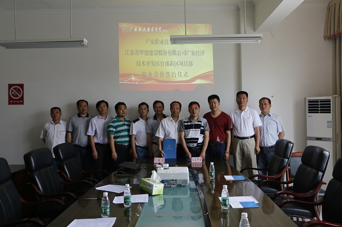 江蘇華建廣安官盛新區建設項目部與廣安職業技術學院舉行校企合作簽約儀式