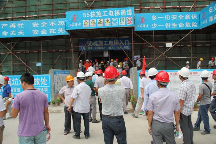 6月17日上午,“2014年陽江市建筑工程文明施工安全生產示范工地現場觀摩會”,在我公司第一項目部施工的陽光馬德里二期工程項目現場舉行。陽江市建設局副局長馮成富、質量安全監督站站長林子歡、書記何聲海和各縣(市、區)住建局安全生產分管負責人、安監站站長以及所有施工、監理單位負責人、安全管理人員近300人參加觀摩會。