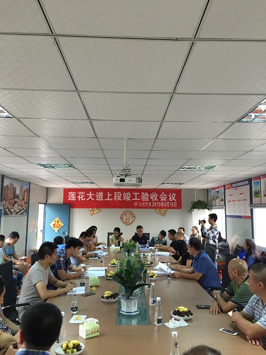 9月16日下午,廣安項目蓮花大道上段竣工驗收會在項目現場會議室舉行。廣安區委常委李榮盛、廣安區住建局副局長周春蘭,財政局、質監站相關領導和廣安項目指揮部各職能部門相關同志等出席驗收會。