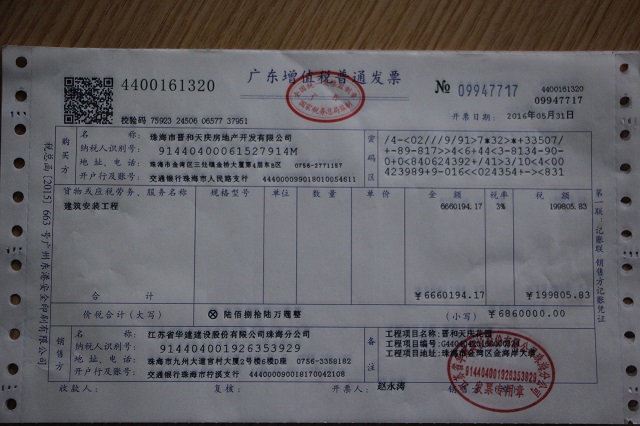 珠海區域公司第一張增值稅發票成功開具 時間:2016-06-01 3112 建筑行業“營改增”自5月1日起正式實施,公司領導高度重視“營改增”工作,先后完成了稅控設備軟硬件更新、數次的“營改增”知識培訓及交流會,并在主管國稅局完成了有關一般納稅人認定、增值稅發票額度調整、公司老項目備案等工作。 5月31日,財務處成功開具了第一張增值稅普通發票,此票為公司第五項目部承擔施工任務的晉和天慶花園總承包工程使用,走出了公司“營改增”工作的堅實一步。
