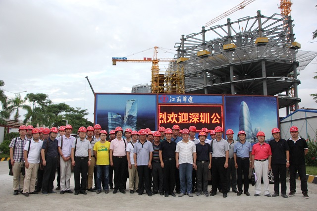 9月8日,在珠海公司總工程師周學軍陪同下,由深圳公司常務副總經理、總工程師吳碧橋帶隊,深圳公司各工程處生產主任、技術主任、項目經理等一行33人到珠海公司承建的帝景灣山莊和晉和天慶花園項目觀摩交流鋁合金模板施工技術。周總通過圖文并茂的PPT講解和現場實地觀摩詳細介紹了鋁合金模板施工技術特點以及與傳統木模板施工的差別,對施工過程關鍵節點做法、成本控制做了講解。雙方人員針對細節和質量控制問題進行了深度交流。