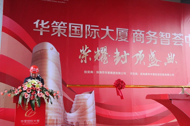 儀式上繆國樞總經理代表總承包單位發言,繆總對華策國際大廈工程實現全面順利封頂表示最熱烈的祝賀!向日夜奮戰在施工現場的全體參建者表示最衷心的感謝!繆總表示,主體結構全面封頂只是階段性的勝利,以后的工作仍然任重而道遠。公司將一如既往地秉承“鑄造精品、追求卓越”的華建精神,科學組織、精心施工、嚴格把關,確保高標準、高質量地完成項目施工任務,將本工程打造成橫琴自貿區一項奪目的建筑藝術品。