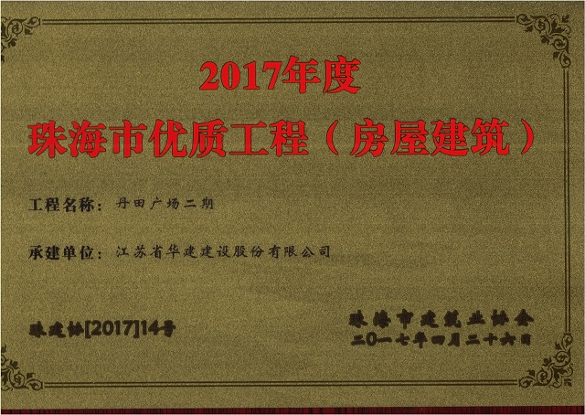 公司2項目獲評珠海市房屋建筑優質工程 時間:2017-05-16 4104 近日,珠海市建筑業協會發文公布2017年度珠海市優質工程名單,我司承建的珠海航空標準件保稅倉儲基地和丹田廣場二期的2個項目榜上有名。