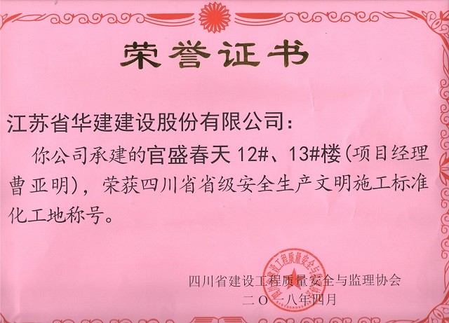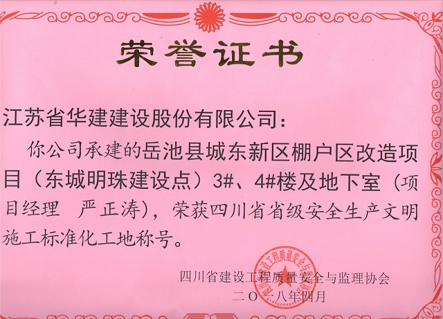 重慶分公司2項目獲評“四川省安全生產文明施工標準化工地” 時間:2018-04-20 3239 4月18日,重慶分公司項目創優再獲新成果,公司承建的岳池縣城東新區棚戶區改造項目(東城明珠建設點)3#、4#及地下室、官盛春天12#、13#樓被四川省建設工程質量安全與監理協會評為“四川省省級安全生產文明施工標準化工地”。至此,重慶分公司獲省級標化工地獎項已達3項。
