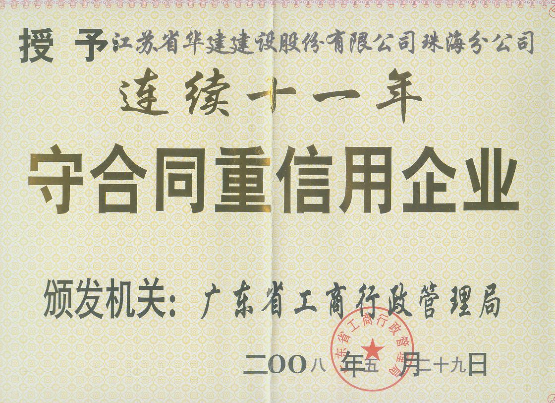 2008廣東省連續(xù)十一年守合同重信用企業(yè)