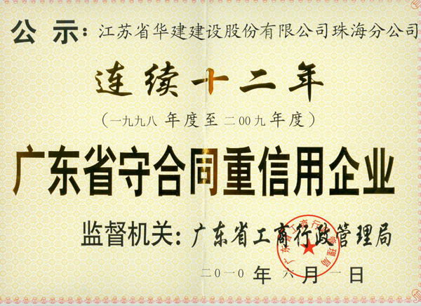 2010年廣東省連續十二年守合同重信用企業