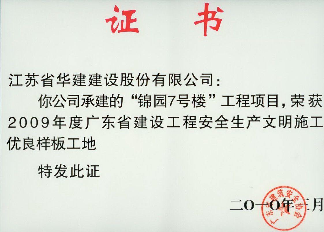 2010年錦園1#、2#、6#樓安全文明市樣板
