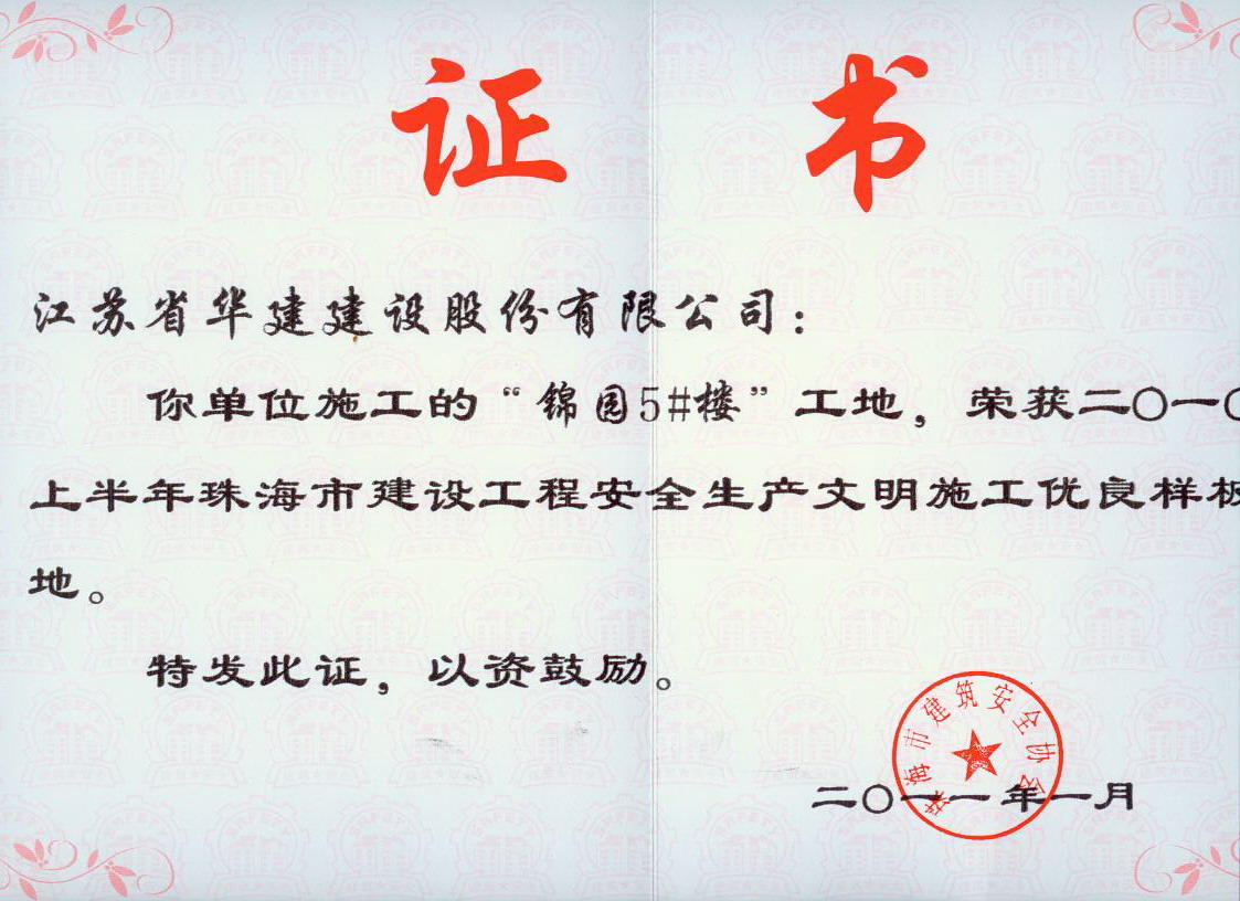 2010年錦園5#樓安全文明市樣板