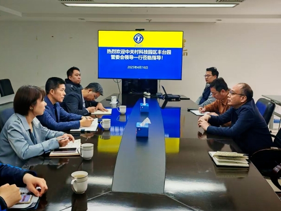 4月16日,北京市中關村科技園區豐臺園管理委員會副主任劉井權、副主任(掛職)龐鵬沙一行到訪...