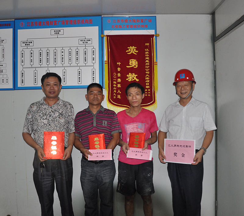 7月2日,惠州公司在大隆財富廣場項目部召開表彰大會,對項目部肖小平和黃小江兩位同志勇救落水...