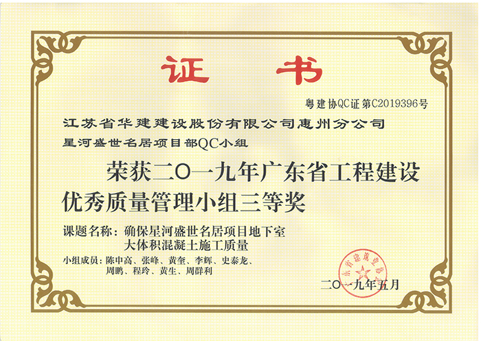 日前,廣東省建筑業協會公布了2019年度廣東省工程建設優秀質量管理小組成果名單,惠州公司2...
