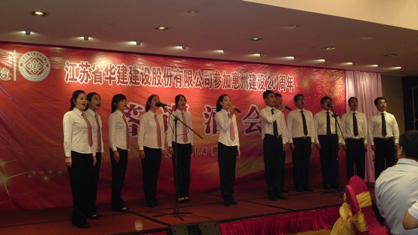 歌聲嘹亮頌華建惠州員工展風采11月4日中午,惠州凱賓斯基酒店王子飯店外彩旗飄揚,宴會廳內一...