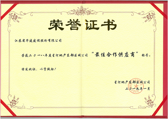 近日,星河地產(chǎn)集團(tuán)東部區(qū)域公司2018年度供應(yīng)商大會(huì)隆重召開,江蘇華建惠州公司被授予201...