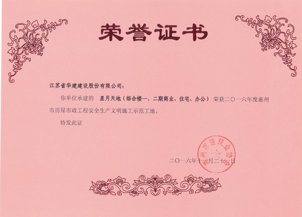 AAA級安全文明標準化工地,是由中國建筑業協會建筑安全與機械分會(原建筑安全分會)實施評選的獎項,是安全文明施工方面的最高獎項。 截止2020年末,江蘇華建共計10項工程入選此獎項。