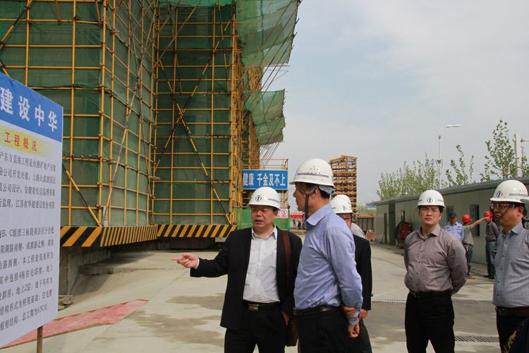 揚州市副市長聞道才赴安徽分公司東方藍(lán)海項目參觀考察 時間:2014-04-11 3530 4月10日下午,揚州市副市長聞道才在揚州市建設(shè)局成自勇副局長、唐朝文處長和廣陵區(qū)、邗江區(qū)、江都區(qū)副區(qū)長等的陪同下,赴我司合肥東方藍(lán)海B、C組團三標(biāo)段項目參觀考察。公司副總經(jīng)理陸俊、公司副總經(jīng)理、惠州區(qū)域公司總經(jīng)理華恒榮向來訪領(lǐng)導(dǎo)簡要介紹了江蘇華建在安徽市場的發(fā)展戰(zhàn)略及東方藍(lán)海B、C組團三標(biāo)段項目的施工情況。 聞副市長對施工現(xiàn)場、施工組織非常滿意,并一再強調(diào)要抓好安全工作,爭創(chuàng)優(yōu)質(zhì)工程,為揚州建筑業(yè)在安徽市場的發(fā)展做出貢獻。
