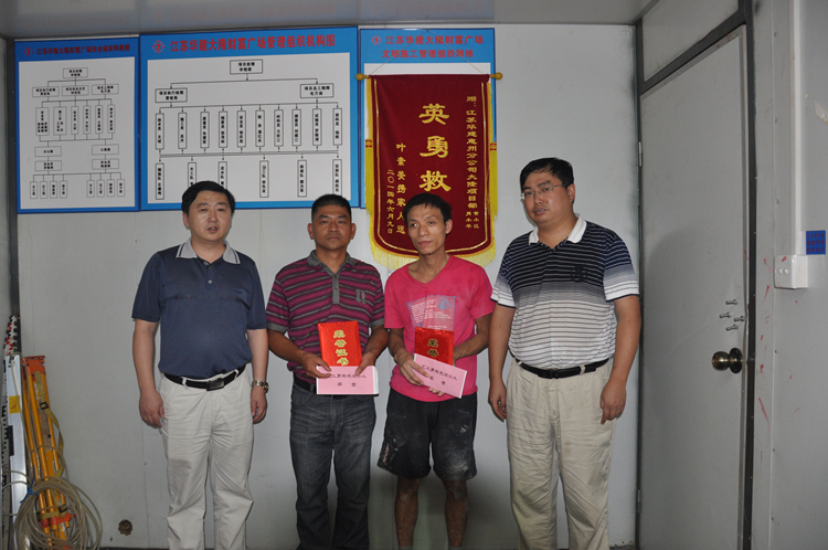 會上,惠州公司副總經理、總工程師龐文榮、分工會主席王健代表分公司經理室和工會向肖小平、黃小江兩位同志發(fā)放“見義勇為先進個人”證書,向大隆財富廣場項目部發(fā)放“見義勇為先進集體”證書,并給予一定數(shù)額的現(xiàn)金獎勵。同時號召大家向兩位同志學習,學習他們舍己救人的崇高精神,學習他們樂于助人的高尚品德,為樹立公司良好精神面貌、傳遞社會正能量做出新的貢獻。
