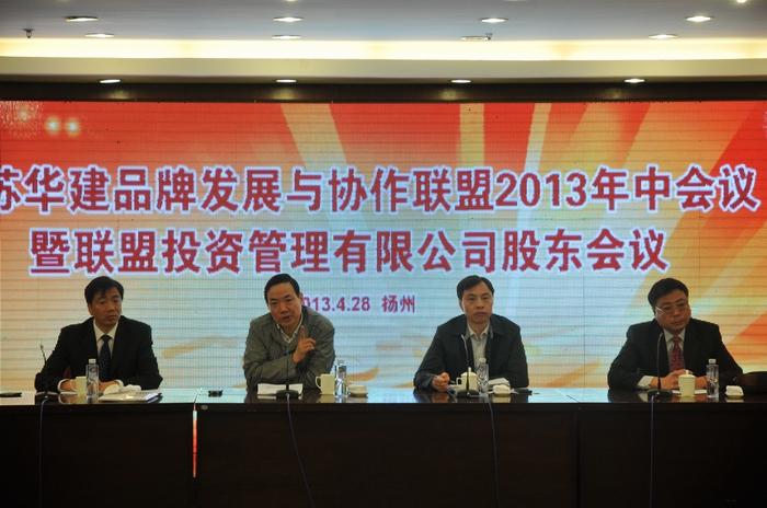 4月28日,江蘇華建品牌發(fā)展與協(xié)作聯(lián)盟2013年中會(huì)議暨聯(lián)盟投資管理有限公司股東會(huì)議在揚(yáng)州召開,19個(gè)聯(lián)盟成員、4個(gè)聯(lián)盟觀察員單位負(fù)責(zé)人和聯(lián)盟投資管理公司全體股東及經(jīng)營(yíng)層參加會(huì)議,江蘇華建副董事長(zhǎng)、總經(jīng)理宗有農(nóng)主持會(huì)議,聯(lián)盟主席陸金龍作了講話,揚(yáng)州市人民政府副市長(zhǎng)聞道才、副秘書長(zhǎng)侯承海出席會(huì)議。