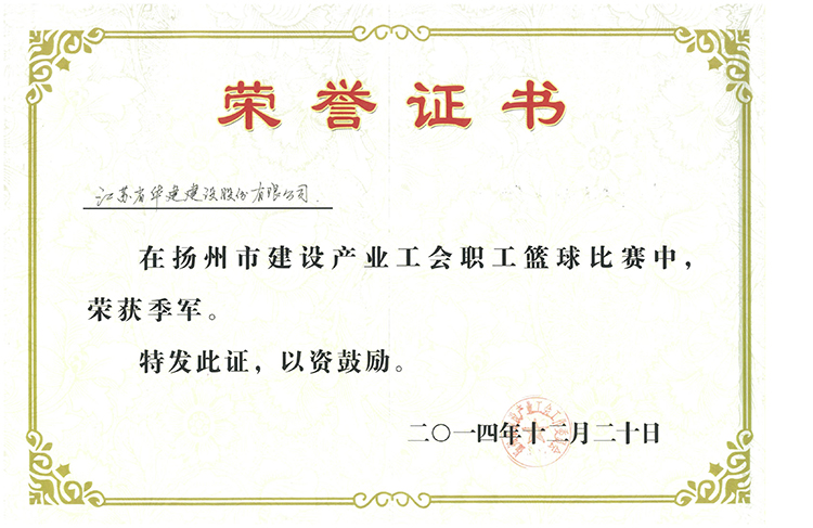 公司籃球隊獲市建設產業工會籃球賽季軍 時間:2014-12-22 4500 12月20日,在揚州市職業大學瘦西湖校區體育館舉辦的“揚州市建設產業工會籃球比賽”中,由總部機關、設計院和檢測中心職工組成的公司籃球隊努力拼搏、奮勇爭先,以兩勝一負的戰績榮獲比賽季軍。 建設產業工會田主席為公司籃球隊頒發獎狀