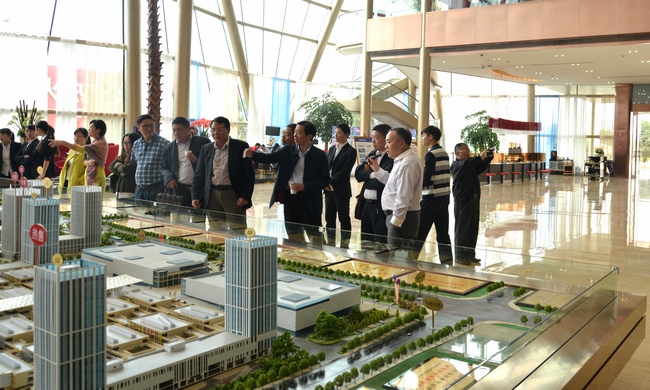 在大漢控股集團(tuán)董事長傅勝龍陪同下,考察團(tuán)參觀了總投資600億,總建筑面積1500萬平方米的金橋國際市場集群。陸董事長對金橋國際的體量和規(guī)劃給予高度評價并表達(dá)了雙方在投資、施工等方面開展深入長期的合作的愿望。傅董事長介紹了大漢集團(tuán)的企業(yè)情況和發(fā)展需求,并就可合作項目與大家進(jìn)行了洽談。雙方在城鎮(zhèn)開發(fā)、幕墻設(shè)計施工、機(jī)電安裝等方面達(dá)成初步合作意向。座談會上,陸董事長還從挖掘人性、內(nèi)部市場化、承諾機(jī)制等企業(yè)內(nèi)部管理方面和大家進(jìn)行了互動分享。