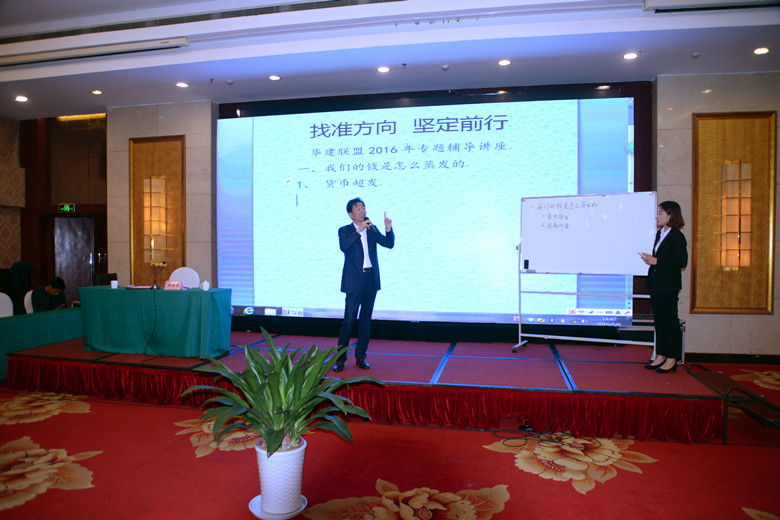 陸主席從過去建筑行業(yè)是平面思維,解的是一元一次方程,現(xiàn)在是立體思維,解的是三元三次方程引入,從貨幣超發(fā)、遠離價值、抄底三個方面首先說明我們的錢是怎么蒸發(fā)的,從平民滅于P2P、中產(chǎn)滅于股市、土豪滅于信托高利債三個層次分析了錢沒有了的三個通道。他說,過去是產(chǎn)品時代,現(xiàn)在是服務時代乃至是生活時代,以“九維”思維才能跟上時代的腳步。他從時間、空間、角度詳細介紹了“九維”思維,“時間”是指過去、現(xiàn)在、未來,空間是指商業(yè)、事業(yè)、神業(yè),角度是指我、你、他。未來決定過去和現(xiàn)在,懂得商業(yè)的人才懂得道,商業(yè)就是交換,透過商業(yè)上升到事業(yè),進而達到神圣的事業(yè)。通過九維,我們才能明白當下經(jīng)商需要的境界。當前的行業(yè)勢已經(jīng)介于C點與D點之間,開始下坡路,產(chǎn)品勢必須有超前意識才有競爭力,團隊勢必須解決動力和阻力的問題,動力就是食、性、愛,阻力就是恐懼和惰性,處于上升勢的團隊才有戰(zhàn)斗力。他強調(diào)說,聯(lián)盟合作必須遵循三個法則:魚缸法則、空靈法則、同頻法則。魚缸法則就是要擴大生存空間,空靈法則就是在新常態(tài)新業(yè)態(tài)下要有新的玩法,做好“四個刪除”:刪除混濁進入純潔、刪除外圍進入核心、刪除腦進入心、刪除疲憊進入放松,同頻法則就是要境界提升、思維提升、價值提升才能達到同頻。陸主席說,文化絕對認同、能量必須匹配、持續(xù)智慧成長、走向合伙創(chuàng)業(yè),是聯(lián)盟合作的基礎。他認為,民營企業(yè)怎么干就是要不設限、無邊無際,三大要素就是:你干的事是剛需的、供應鏈金融、聯(lián)盟。當前信用缺失的社會更需要契約精神。陸主席啟發(fā)大家,學習的意義是引發(fā)新的思維和方向,并讓自己深度思考和覺悟,進而改變自己未來的命運。學習的通道是讀萬卷書、行萬里路、高人指路、閱人無數(shù)、自己頓悟,最終都不如直接進入,即從體驗入、與實相合。他指出,民營企業(yè)家要為真人、做正事、會造場。當下經(jīng)商(過渡時期)要經(jīng)歷三個時代:審判時代(2014—2016年)、覺醒時代(2017—2019年)、覺悟時代(2020—2022年)。時間是個神,能解決一切問題,罩見未來十年,是立體的動態(tài)的。早點覺醒,知道風口在哪,就知道未來怎么干。時代就像潮汐一樣有高潮有低潮,有堅定之心、感恩之心、成長之心、擔當之心就能贏得未來。貴族就是要有自由的靈魂、文化教養(yǎng)和社會擔當。陸主席三元三次方程“九維”的精彩講座打開了企業(yè)家的思維,為開創(chuàng)未來奠定了堅實的思想基礎。