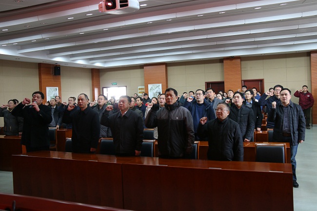 全體人員在報告廳觀看了市紀委拍攝的記錄片《堅決把紀律和規矩挺在前面》,心靈受到了震撼,思想得到了洗滌,真切地感受到了法紀的威嚴。活動最后,在紀委書記錢啟明的帶領下,全體人員右手握拳,高高舉起,莊嚴地進行了廉政宣誓,共同表達廉政勤政的決心。