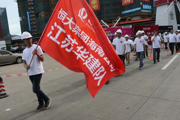 江蘇華建積極響應海口市“雙創”活動 時間:2015-09-01 3011 8月29日上午,海口市龍華區“雙創”啟動大會在我公司承建的恒大外灘中心項目現場召開,龍華區區委書記王東等領導出席啟動儀式,公司副總、海南分公司總經理王宏到會并做表態發言。 隨后,會場舉辦“我愛海口,力爭雙創”授旗儀式,并組織志愿者“自掃門前雪”,手拿掃把、簸箕等工具,將所屬衛生轄區打掃得干干凈凈,以實際行動來踐行“雙創”工作。