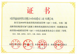 海南公司五項QC成果獲得省級表彰 時間:2018-09-03 3405 日前,海南省質量協會公布了2018年海南省“優秀質量管理(QC)小組”活動成果評比結果,海南分公司共有5項成果受到表彰。其中,海花島2#島三(一)期2-10-1地塊QC小組榮獲二等獎,博鰲三江口濱水旅游商業區(二期)項目部QC小組、三亞婦幼保健院整體搬遷(新址)建設項目QC小組、恒大海上帝景QC小組、華盛中央公園國際公寓QC小組榮獲三等獎。 (技術質量處)