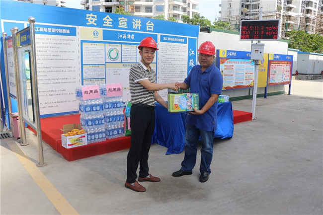 公司工會赴工地進行高溫慰問 時間:2019-06-11 2679 6月10日上午,海南分公司黨總支副書記、工會主席郁遠帶隊走訪慰問海口恒大·美麗沙項目部,檢查項目安全生產情況,并給奮戰在高溫、露天生產第一線的員工送去涼茶、綠豆、人丹等防暑用品,送去企業及工會組織的關懷。 在詳細詢問了工程推進情況和一線職工的工作、生活情況后,郁遠書記囑咐項目負責人要安排好施工現場人員的作息時間,做好降溫消暑保護措施。并叮囑一線的職工要注意人身與施工安全,合理安排工作時間,做到勞逸結合,確保高溫期的安全生產。(辦公室)